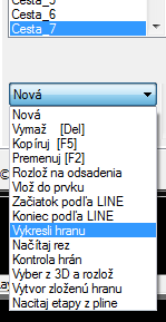 Obrázok 8 Vybraná časť okna Hrany - Prvky z hrán; rozbalené rozbaľovacie pole s funkciami pre kreslenie