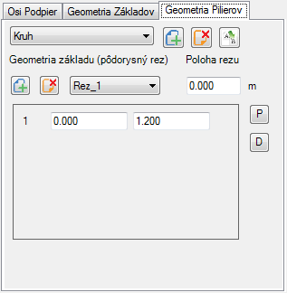 Pilier kruhového prierezu je možné zadať tak že do tabuľky rezu zadáme iba jeden vrchol (riadok) do ktorého v druhej hodnote zadáme priemer piliera.