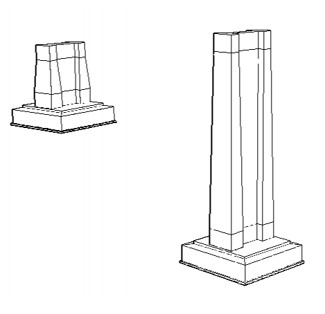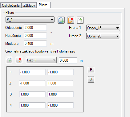 Každý pilier je definovaný pôdorysnými rezmi s príslušnou výškou rezu. Takto si dokážeme vytvoriť pilier ľubovoľného pôdorysného tvaru definovaného polygónom (lomenicou - bez oblúkov). Pilier bude osadený do bodu geometrického stredu.