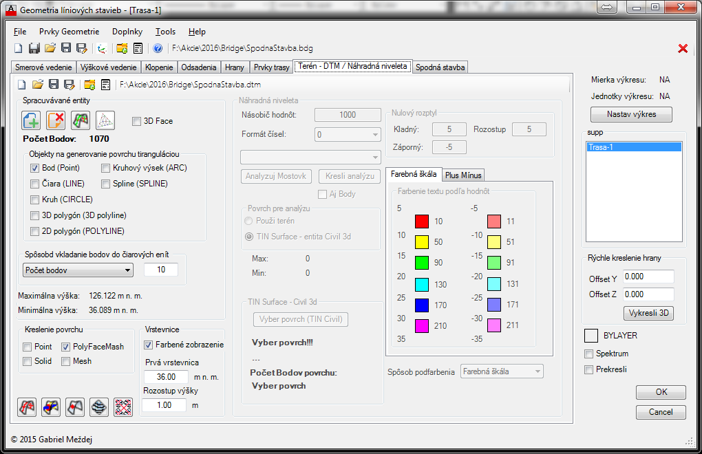 Obrázok 10 Okno zadania povrchu (terén - DTM) / analýza mostovky